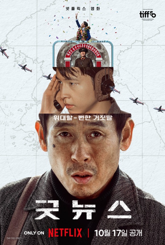 1970년대를 배경으로, 납치된 일본 여객기를 서울에 착륙시키기 위한 비밀 작전이 벌어집니다. ‘굿뉴스’라는 이름은 바로 그 작전을 지칭합니다 — 누군가의 체면을 지키기 위해 꾸며낸 ‘좋은 소식’.