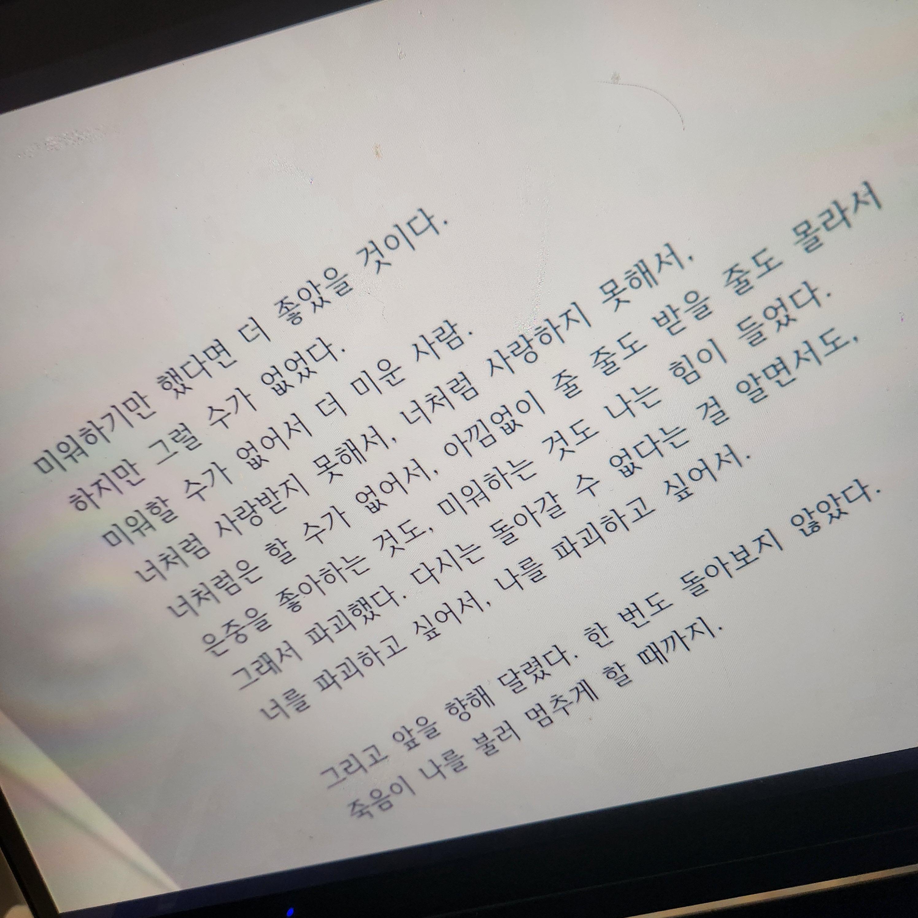 이때 상연의 유서와도 같은 글이 드러납니다. 그 글은 충격적일 만큼 단순한 문장으로 시작합니다.
