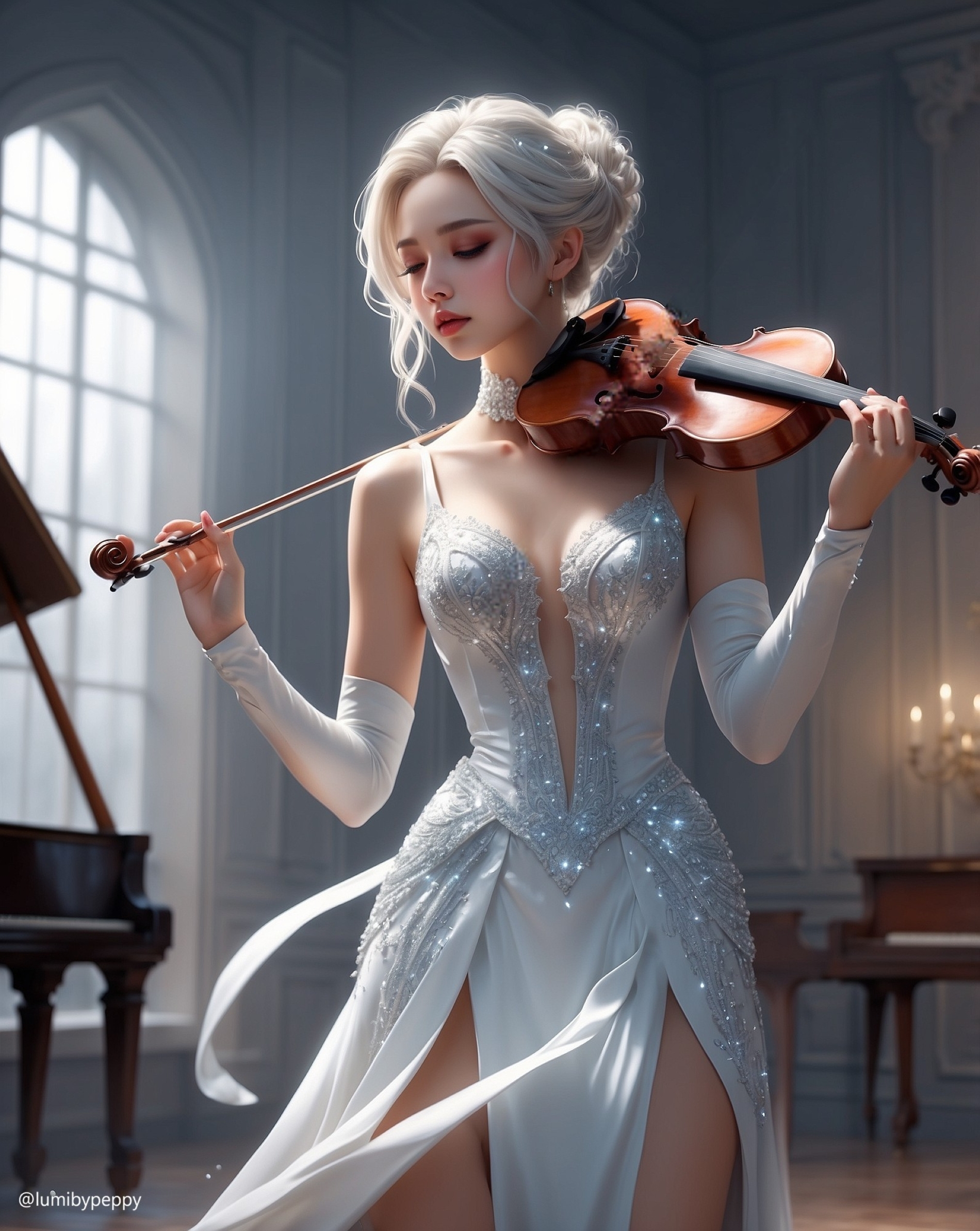 그녀의 손가락이 운지법을 기억했다. 사용하지 않았던 것과 감정으로 떨리면서도, 그녀는 빈 방에서 혼자 연주했고, 음들이 그들만의 특별한 아픔으로 공간을 채웠다. 음악이 그녀가 할 수 없었던 말을 대신해주는 듯했다.